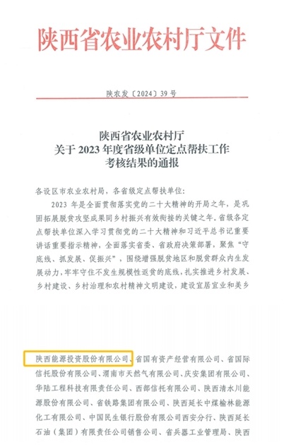近日,2023年度省級單位定點(diǎn)幫扶工作考核等次名單公布,陜西能源鄉(xiāng)村振興定點(diǎn)幫扶工作連續(xù)三年被評定為最高等次“好”的評價。